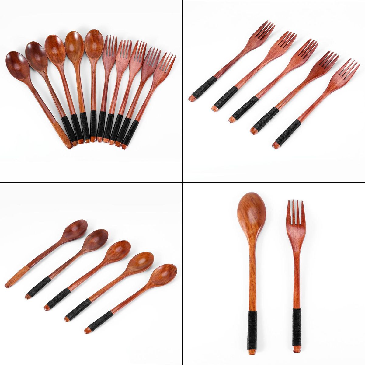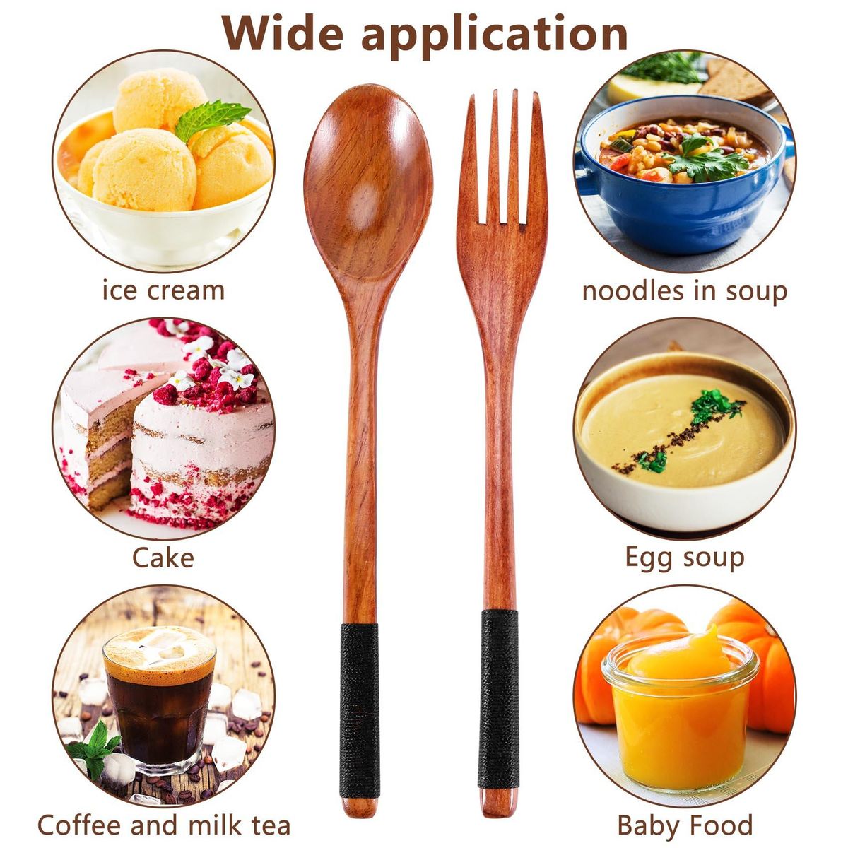 Diverse applications: this Japanese style reusable handmade wooden flatware set is suitable for different foods, you can apply spoons for soup, rice, dessert, ice cream, beans, apply forks for eating noodles, vegetable salad, fruit salad and more