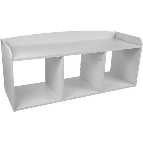 Ideal for children's bedroom, playroom, living room or office.Consists of 3 storage compartmentsStorage bench designed in treated woodCan be used as a Kids Book ShelfMaterial: FSC certified woodConsists of 3 storage compartmentsAvailable in 4 colours: Grey, Blue, White and PinkMaterial: FSC certified wood.