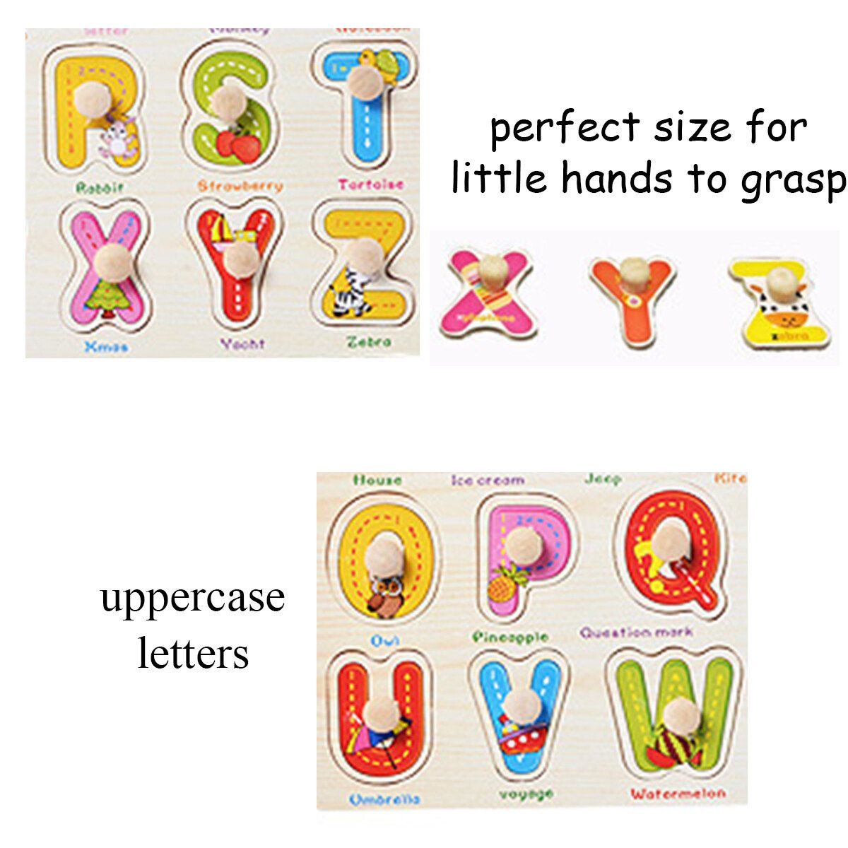 ◆The uppercase letters blocks puzzle board is made of wooden, durable .