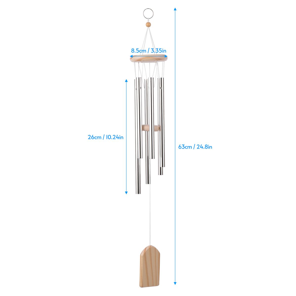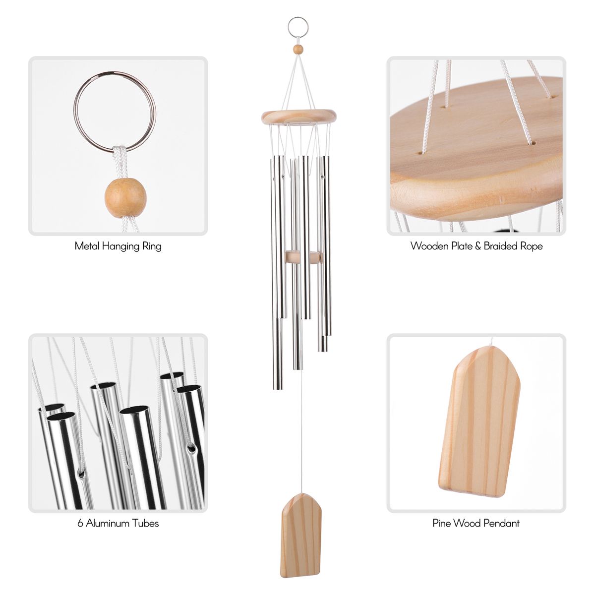 Wooden wind chimes with 6 tubes can make crisp and clear sound, it is a beautiful decoration for your room and yard.