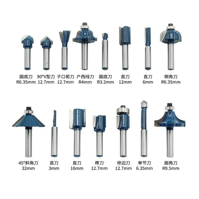 15 Pieces 1/4" (6.35mm) Shank Trim Milling