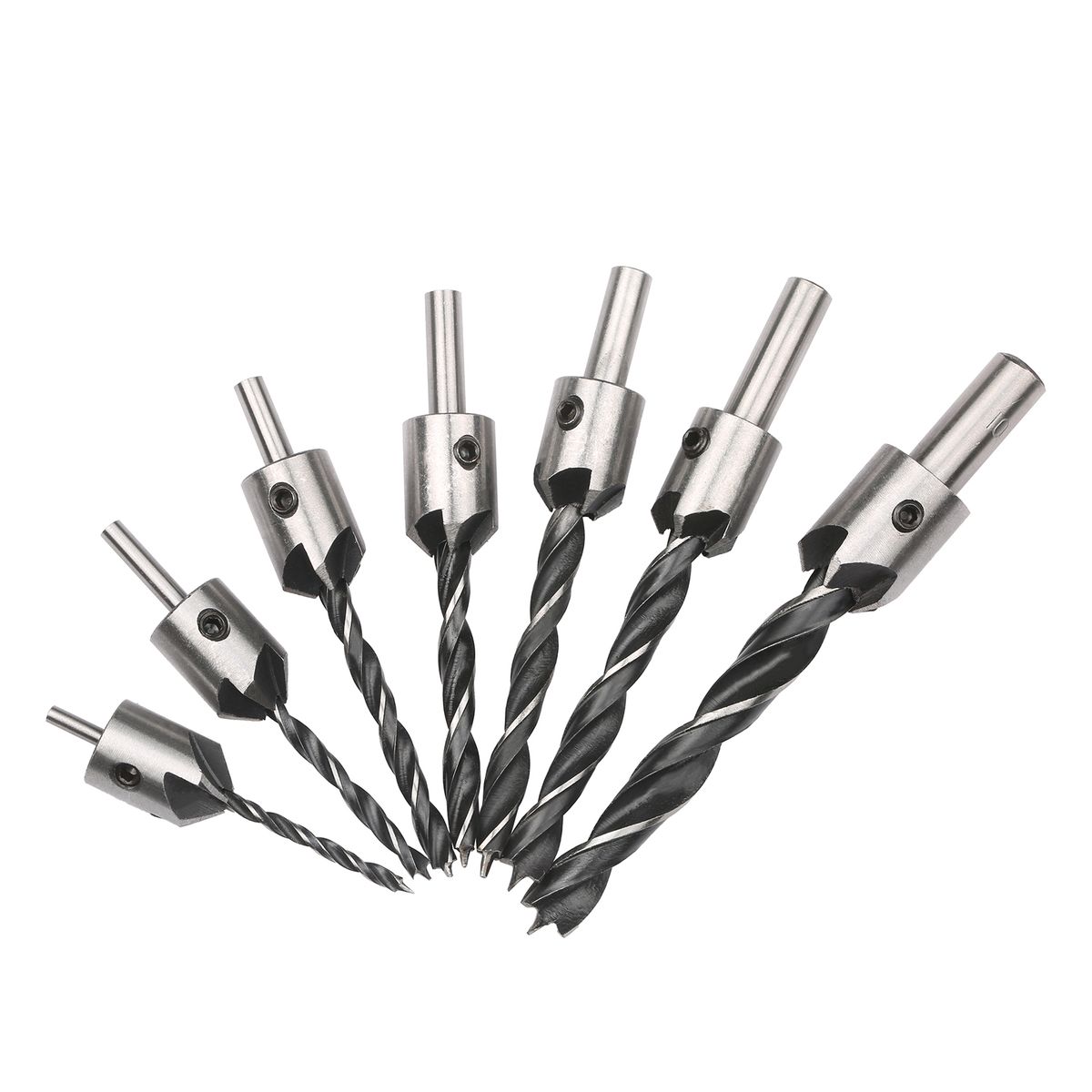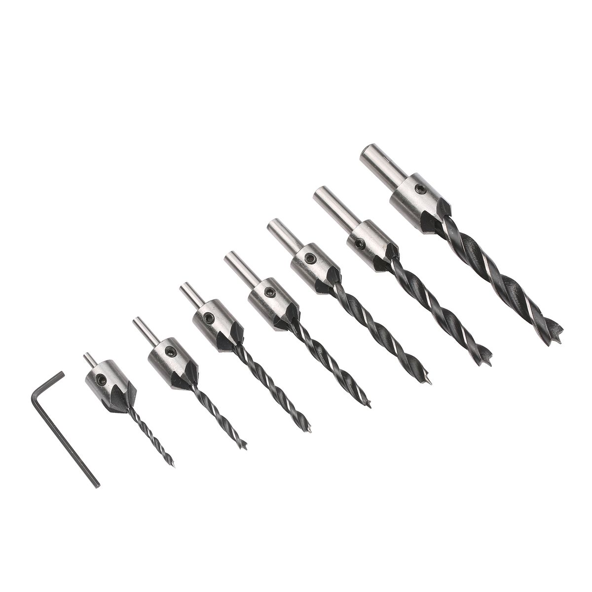 3-Pointed Countersink Drill Bit Set -- 7pcs 3mm, 4mm, 5mm, 6mm, 7mm, 8mm, 10mm.