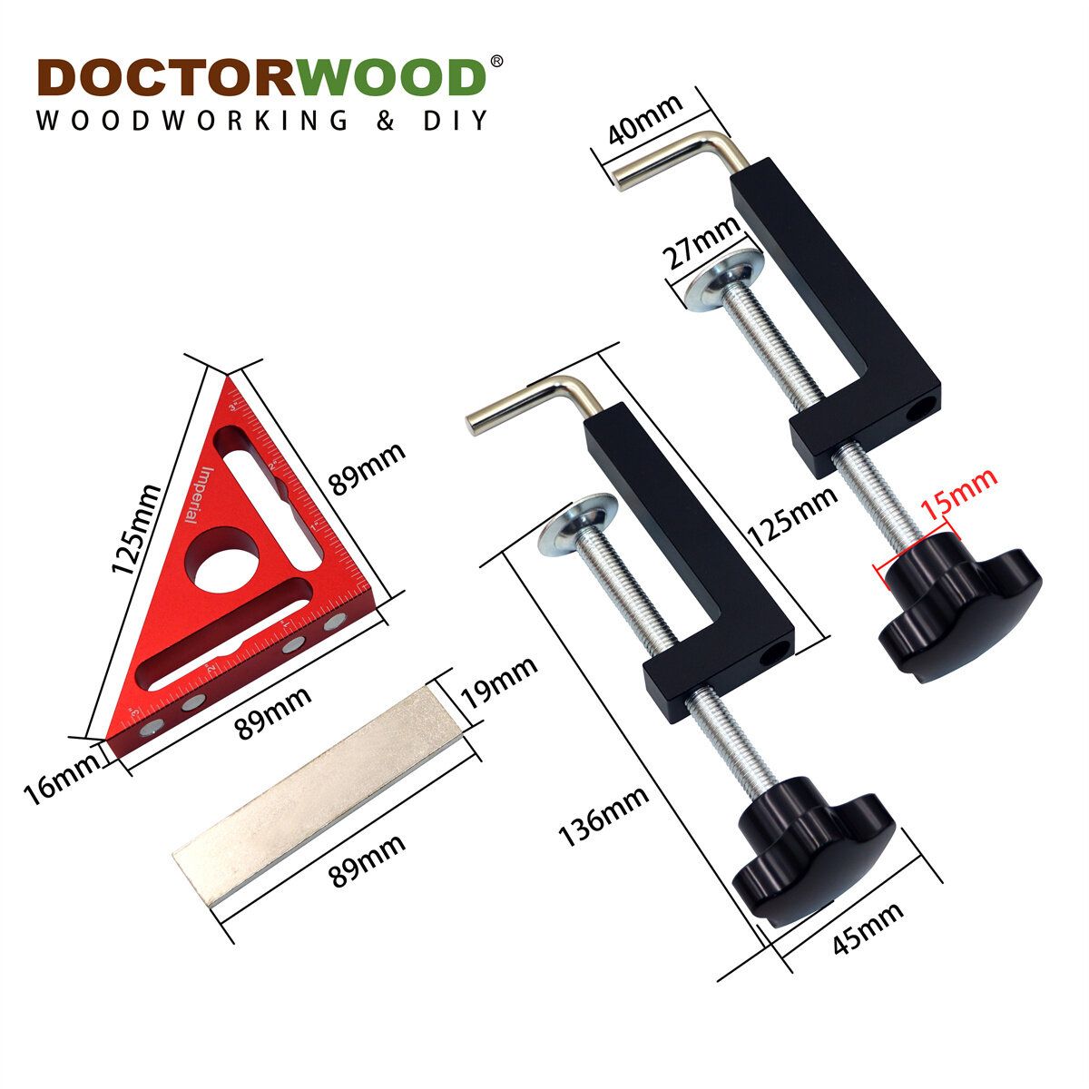 Features:High Quality Material: This 90-degree L-shaped ruler is made of high-quality aluminum, ensuring robustness and longevity. The sturdy design makes it reliable and efficient for a wide range of woodworking tasks. Dual Use: The ruler and the wood clip can be used together or individually, offering versatility and convenience for various projects. Precise Measurement: The front side of the ruler has metric measurements, while the back side provides imperial measurements, enabling you to work with ease irrespective of your preferred measurement system. Extendable Clamping Range: The unique design allows you to rotate the clamp to extend the clamping range, providing flexibility for a wide array of applications. Versatile Applications: Ideal for picture frames, woodworking, and more. This tool can handle a variety of tasks, making your work efficient and convenient. Specifications:Product Type: 90 Degree L-Shaped Triangle Ruler amp; ClampMaterial: AluminumColor: Red / BlackSize: 80mmScale: Metric and InchFunction: Rotatable for extending clamping range Package Included:1 x Triangle Ruler Angle Clamp2 x Fixed Clips