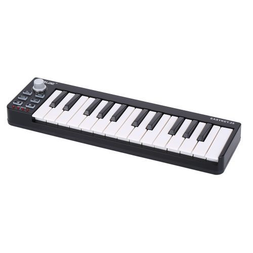Features:25 velocity-sensitive mini-keyboard keys.4 programmable memory banks.