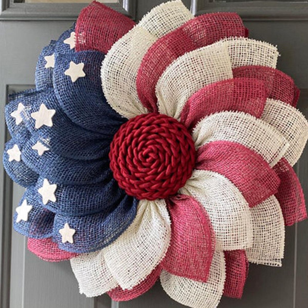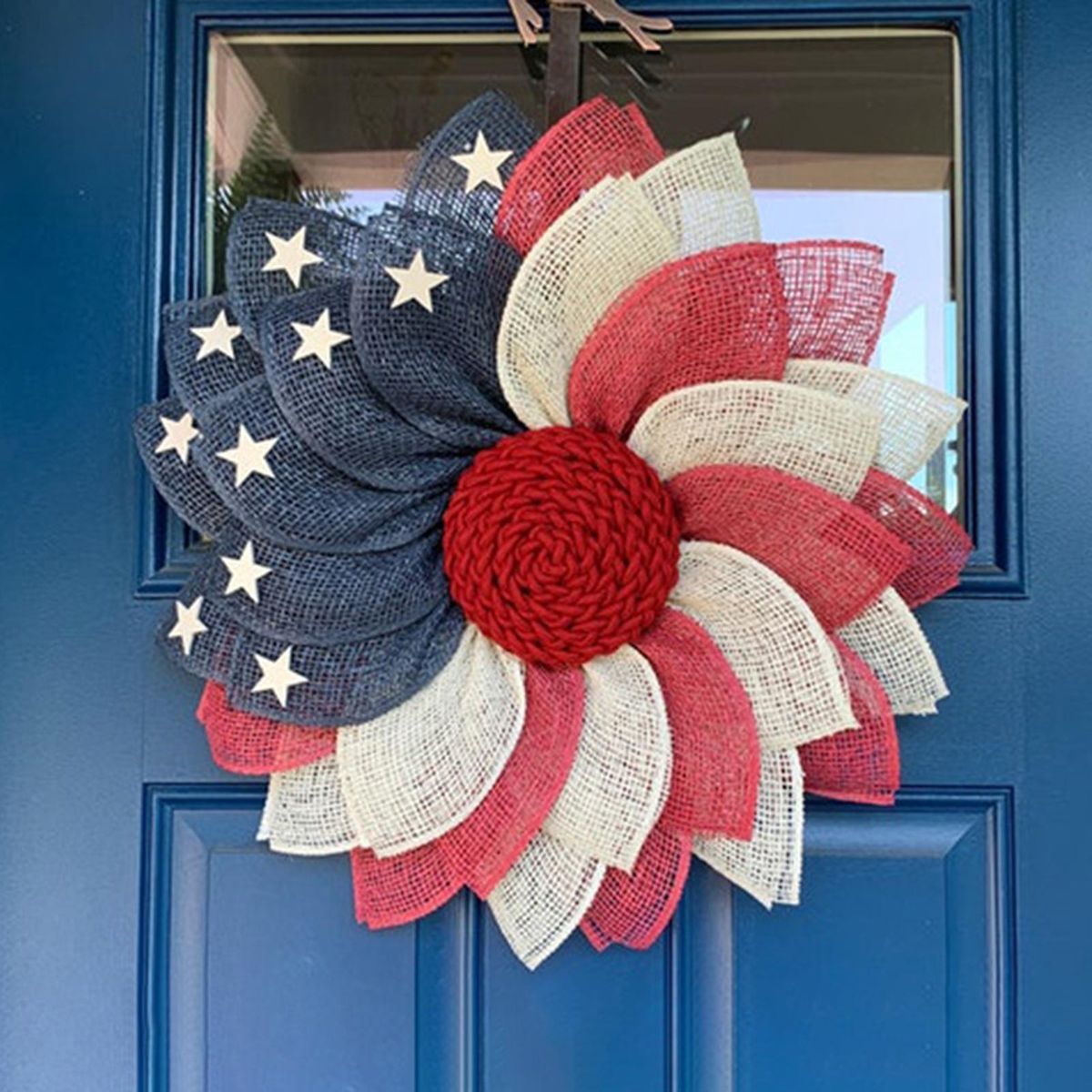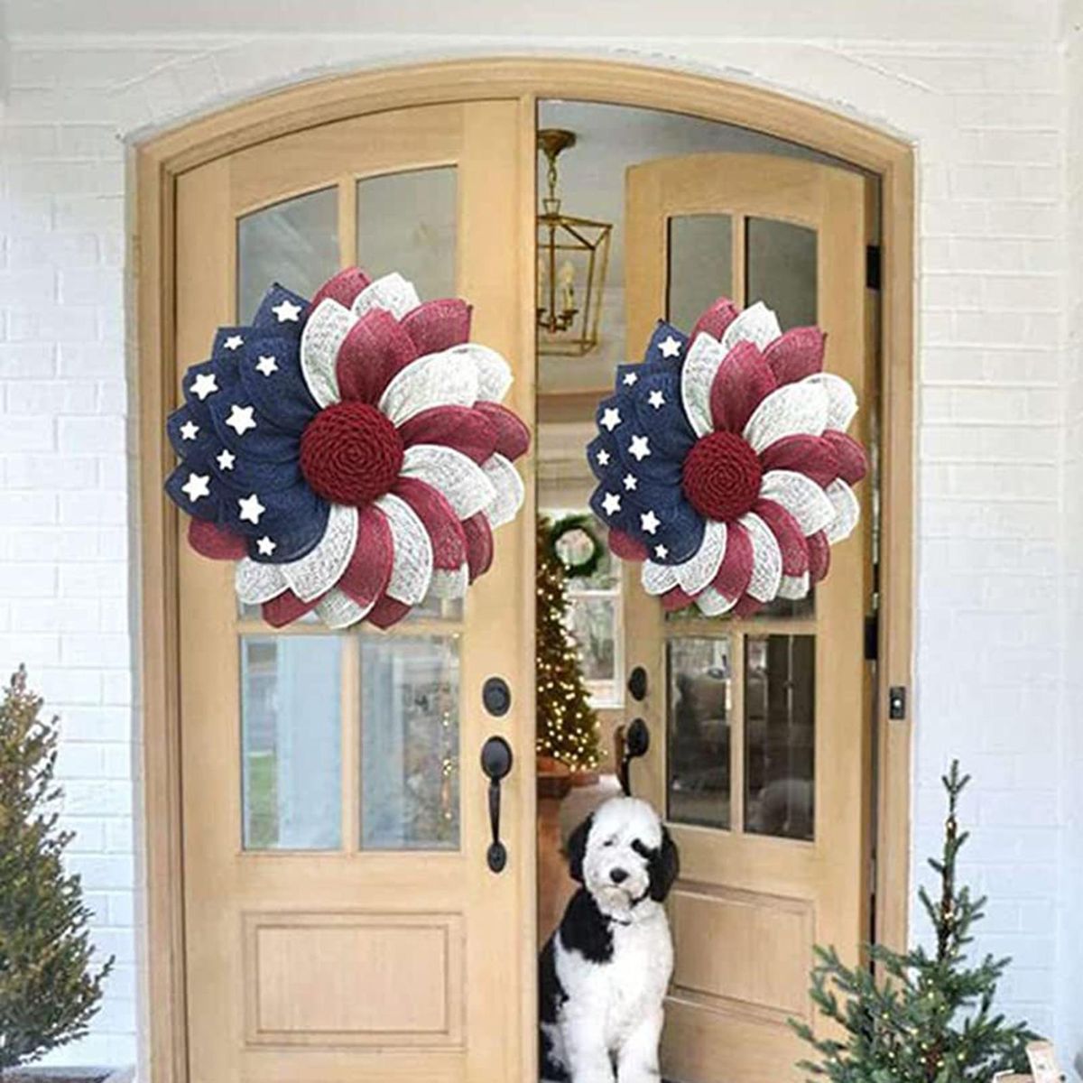Featuring an American Independence Day-themed design, this wreath can be hung on the wall or greeted at the front door to create a festive and patriotic atmosphere.