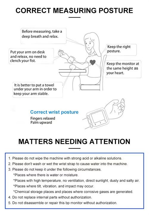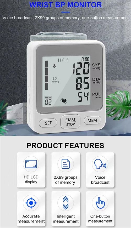 Our BP Device is one button measurement easy to use with easy to read Large LCD Screen. Simply strap the cuff around your wrist. Your measurement will appear on the LCD display Screen in under a minute, The device will read out your result after diagnostic and let you know if you are healthy