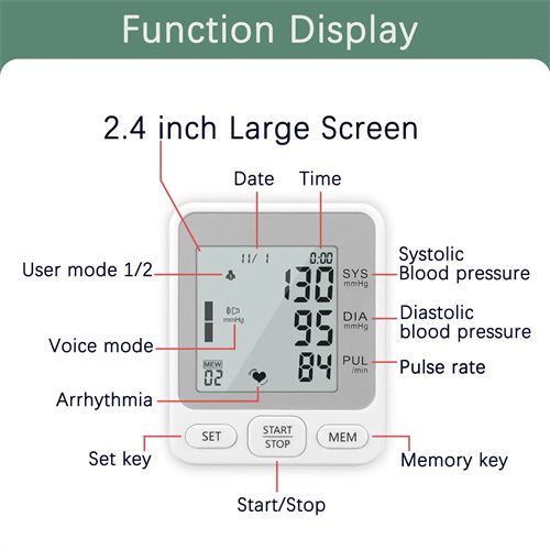 Large LCD display and Voice for easy reading: The large LCD screen and digits make it easy to read measurements. A pleasant female voice will tell the measurement readings of high pressure, low pressure, and heartbeats. Suitable for the old use at home.The voice function can be turned off if you don't need it.