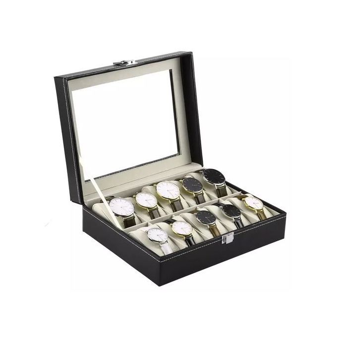 - Leather 10 Slots Wrist Watch Display Box Storage Holder Organizer Windowed Case