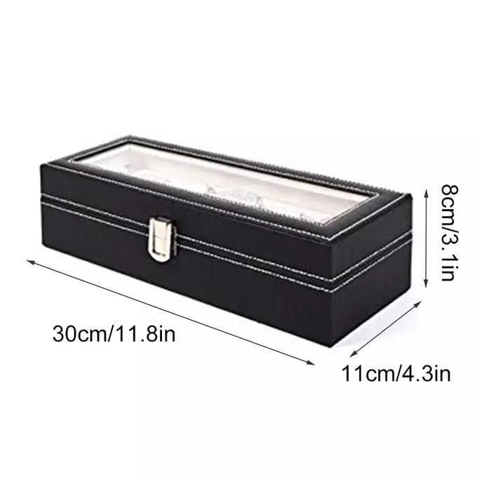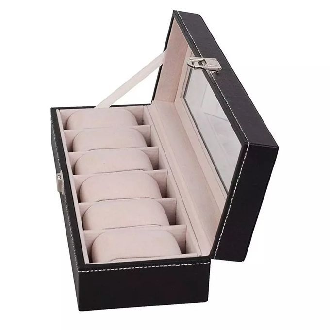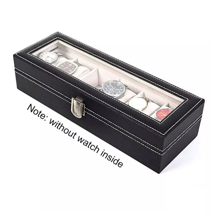 - Leather 6 Slots Wrist Watch Display Box Storage Holder Organizer Windowed Case
