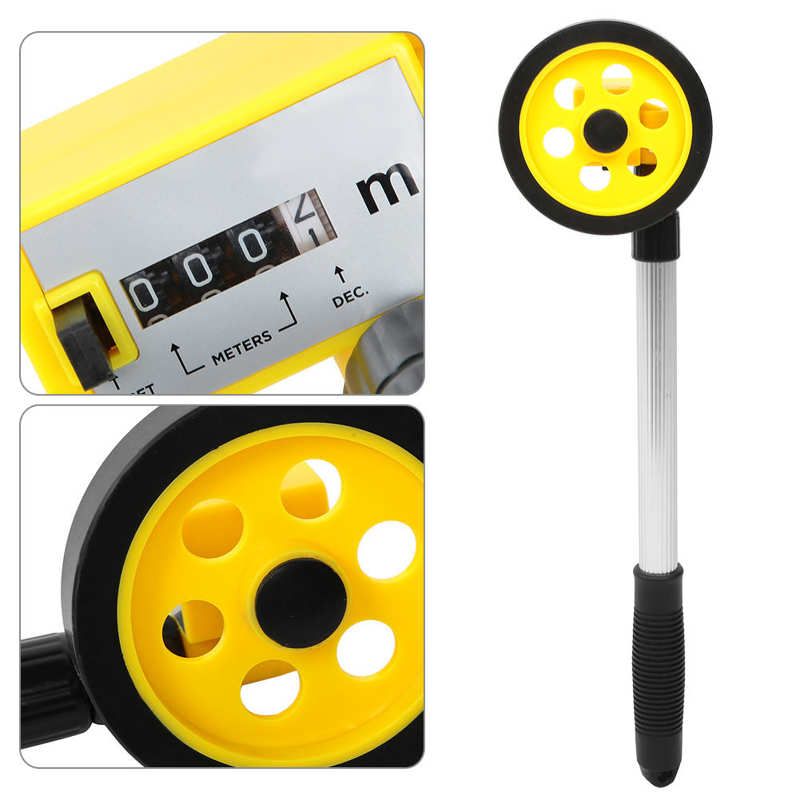 Accurately measures up to 999.9m. Push Button Rests Measuring to Zero. TPR elastic plastic tires resist corrosion. The aluminum handle is light and easy to hold without being tired. Small enough to make it perfect for indoor measuring on smooth, hard surfaces and large enough to work its way outdoors for your measuring needs.