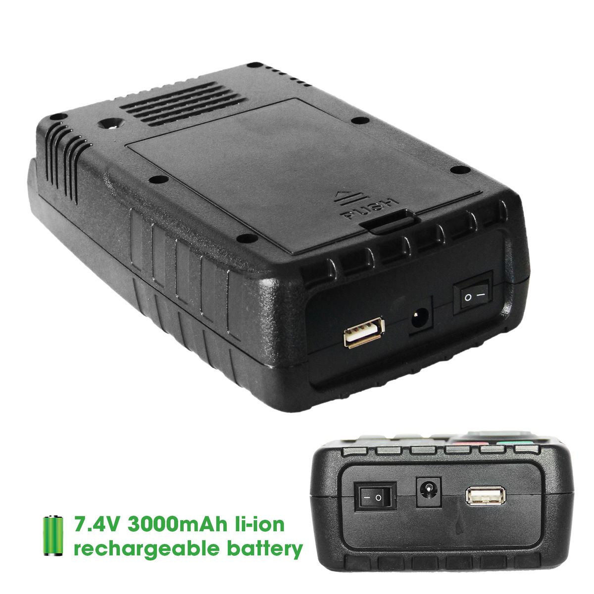 Built-in 7.4V/3000mAh Li-ion battery, about 4 hours battery operation time.