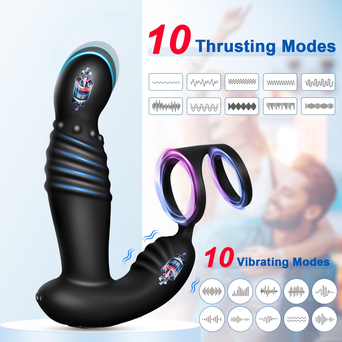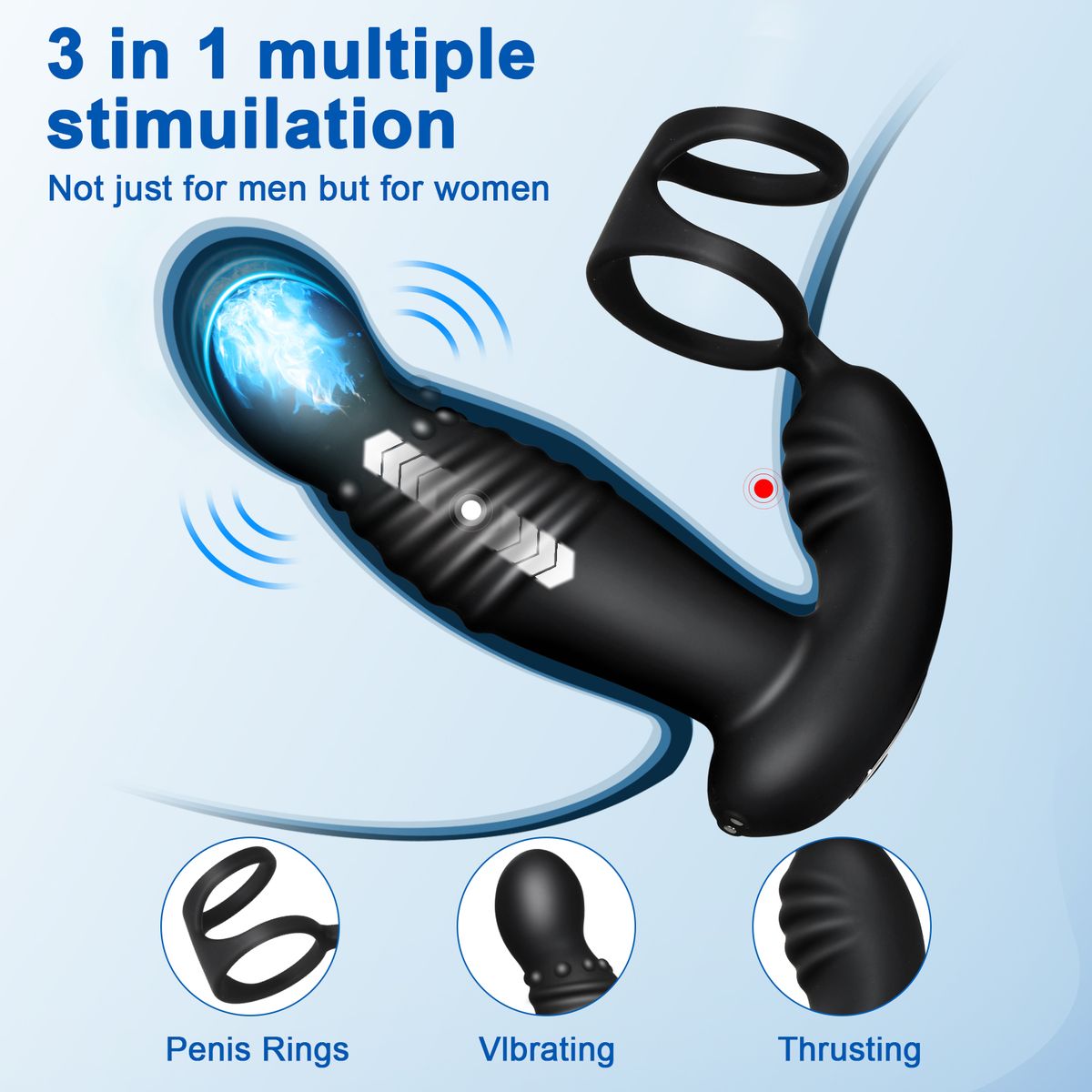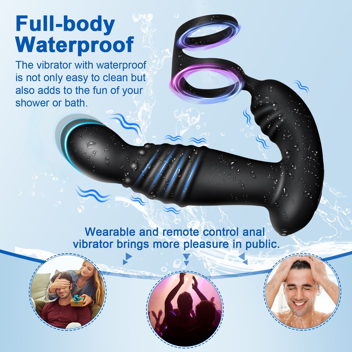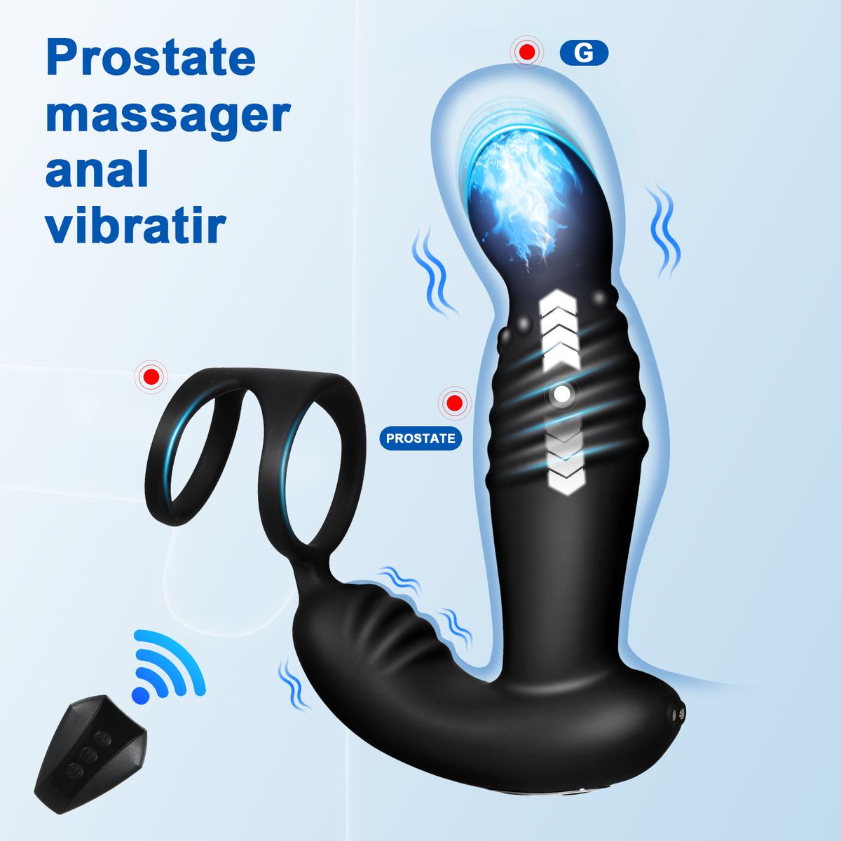 Wtoyu Prostate Massager with Ring Anal Plug Vibrator Remote Control Plug Penis Training Silicone Sex Toys 10 Vibrating & 10 Thrusting Modes for Men Couples