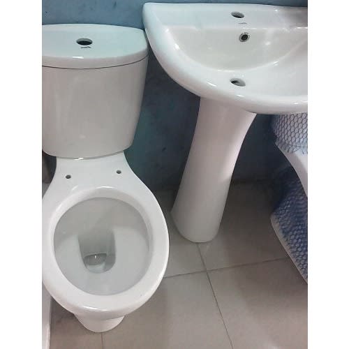 This is top flush WC set with wash hand basin and pedestral. It is made with finest cereamic that satisfies consumers taste for quality and durability over the years. The sparkling white color makes it ideal choice for every mordern toilet. Toilet Seat , Basin & Pedestal Stand it comes with Tap, two bathroom accessories such as tissue holder and towel holderIt is built with strong internal flow master system which ensure speed flushing with just a simple touch of top button. It is affordable too!