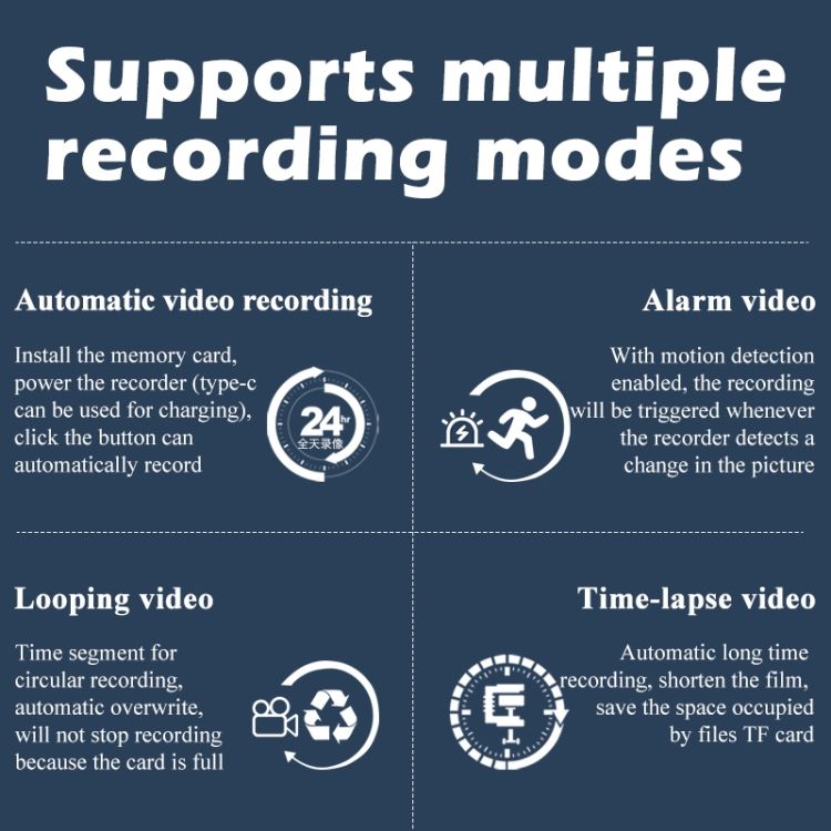 10. Duration: About 150 minutes (Type-C data cable can be recorded while charging)