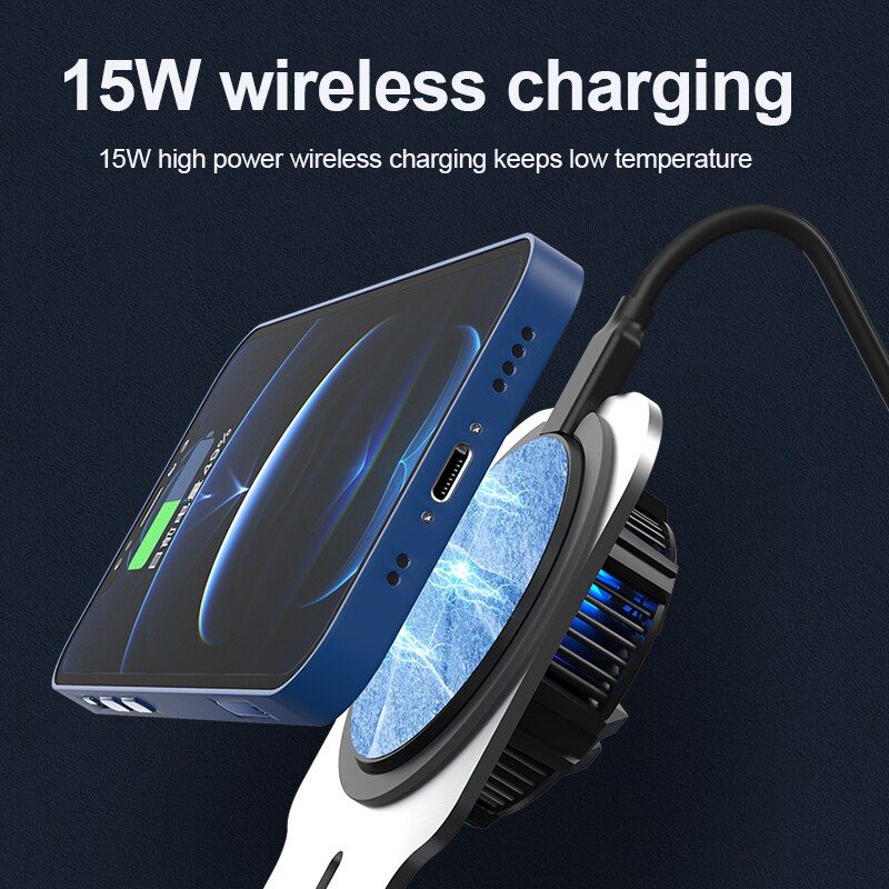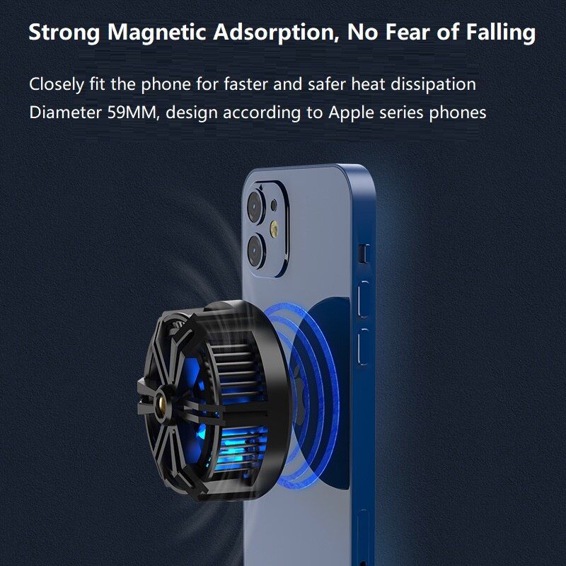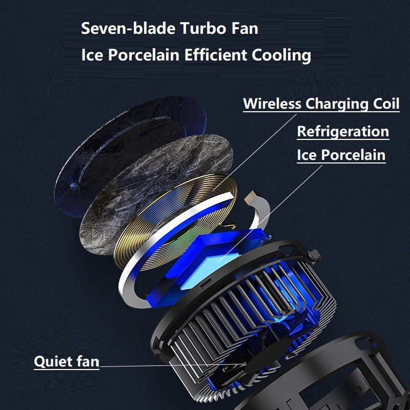 Features: -Smart three-in-one mobile cooler -New upgraded acceories, seven-blade turbo silent fan, using ice porcelain for efficient heat diipation and cooling, fast cooling speed and good effect. -Strong magnetic adsorption, closely fits the phone, making heat diipation faster and safer. -Small and portable, with a diameter of 59mm, does not block hands and does not affect operation. -Support 15W high power wirele charging, support full protocol (QC and PD protocol). -With bracket fixing screw holes, you can broadcast live while diipating heat to ensure the smoothne of live broadcast. Specifications: Applicable Models:For Android iOS Phone Color:As Shown Product Size:6cm x 6cm x 3cm Package Size:13.5cm x 9.5cm x 4.5cm Gro weight:280g Net weight:165g Material:ABS+Aluminum Alloy Input voltage:5V Input current:2A Wirele charging power:15W Rotating speed:5500 rpm Interface Type:Type-C Packing List: 1 x Mobile Phone cooler 1 x Data line 1 x bracket(optional) Note: The wirele charging function does not have an independent switch, it can work when connected to the power supply