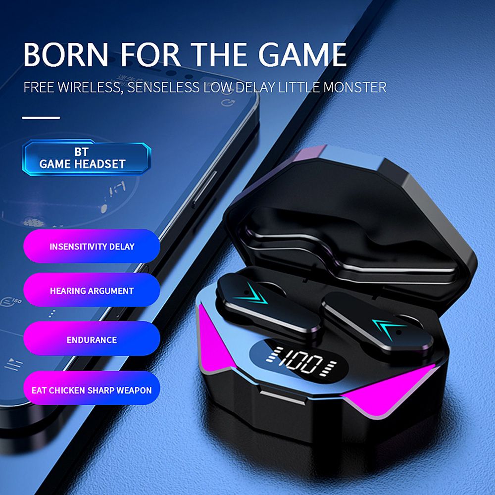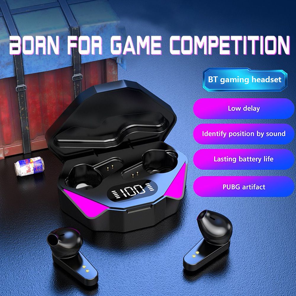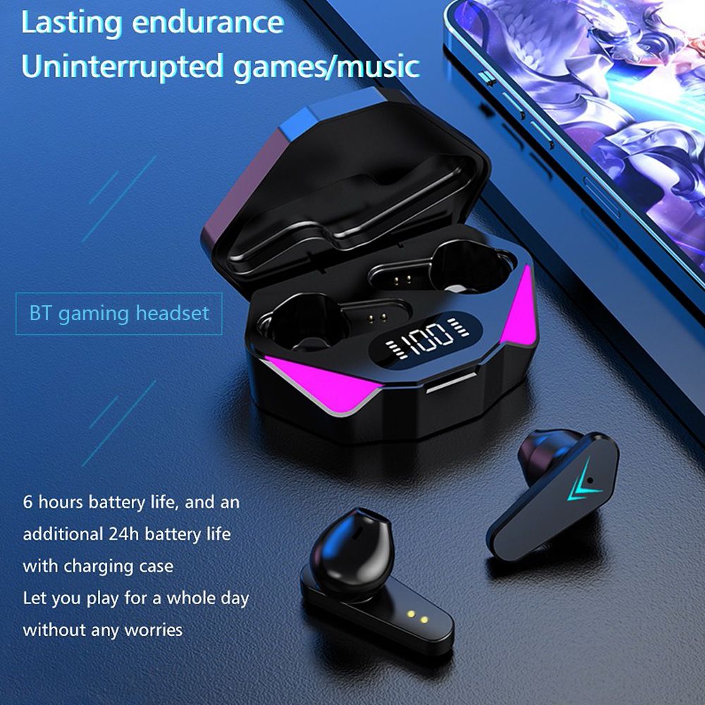 X15 True Wirless Stereo Earphones Semi-in-ear BT 5.0 Headphones with Dual Modes/HiFi Stereo Sound/65ms Low Latency/12mm Speaker/Noise Canceling/Binaural Design Headsets with MIC for Gaming/Sports/Music Compatible with iOS Android