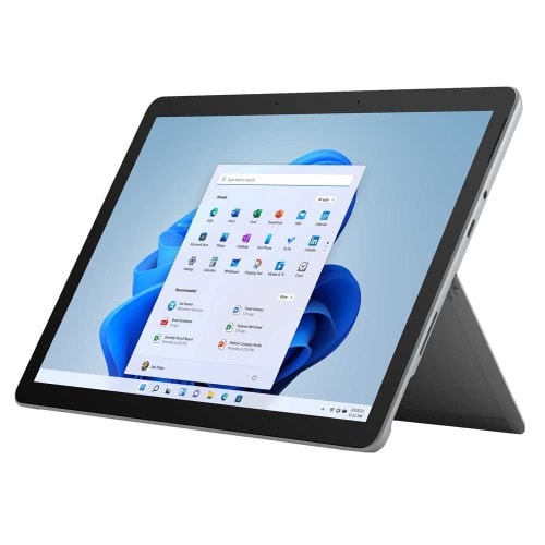 1.3 GHz Intel Core M3-10100Y8GB RAM | 256GB SSD Storage10.5" 1920 x 1280 PixelSense TouchscreenIntegrated Intel UHD Graphics 615MicroSDXC Media Card ReaderWi-Fi 6 (802.11ax) | Bluetooth 5.05MP Front Camera | 8MP Rear CameraStereo Speakers | Dual Far-Field MicsUSB Type-C | 3.5mm Headphone JackWindows 11 Home in S ModeMicrosoft Go 3 SpecsOperating System Windows 11 Home in S ModePerformanceProcessor Intel Core M3-10100Y (10th Gen)CPU 1.3 to 3.9 GHz Dual-CoreGPU Intel UHD Graphics 615Sensors Accelerometer, Ambient Light Sensor, Gyroscope, MagnetometerTotal Installed Memory 8 GBDisplayPanel Type LCDSize 10.5"Aspect Ratio 3:2Resolution 1920 x 1280Contrast Ratio 1500:1Pixel Density 220 ppiStorage and ExpansionTotal Installed Capacity 128 GBSolid State Storage SSDMedia/Memory Card Slot Single Slot: SD/SDHC/SDXCI/OUSB Type-C 1 x Unspecified USBAudio 1 x 1/8" / 3.5 mm Headphone OutputBuilt-In Speakers 2 x 2 WBuilt-In Microphones 2 x Far-FieldCommunicationsWi-Fi Wi-Fi 6 (802.11ax)Bluetooth 5.0NFC NoCamera System Front5 MP SensorRear8 MP SensorCamera Flash NoneVideo Recording Front1080pRear1080pBatteryEstimated Battery Life 11 HoursGeneralPower Supply 24 W with Barrel/ProprietaryPointing Device TouchscreenSecurity Facial Recognition, Dedicated Hardware TPM Security ChipDesigned for businesses, students, and families, the Microsoft Surface Go 2 offers the versatility to take on everyday tasks. Its durable 10.5" PixelSense 10-point touchscreen display supports a 1920 x 1280 resolution with a 3:2 aspect ratio that provides more vertical screen space for documents, photos, movies, games, and more while the built-in adjustable kickstand allows you to comfortably view content.