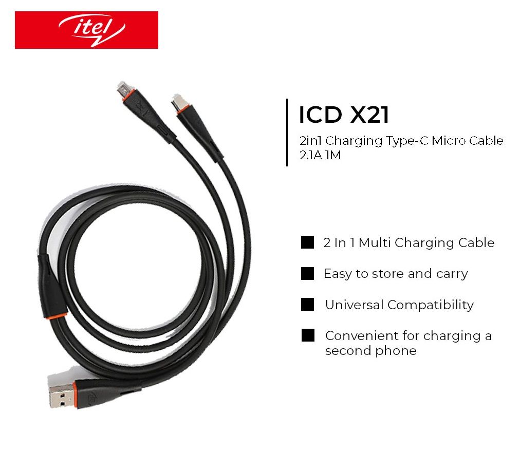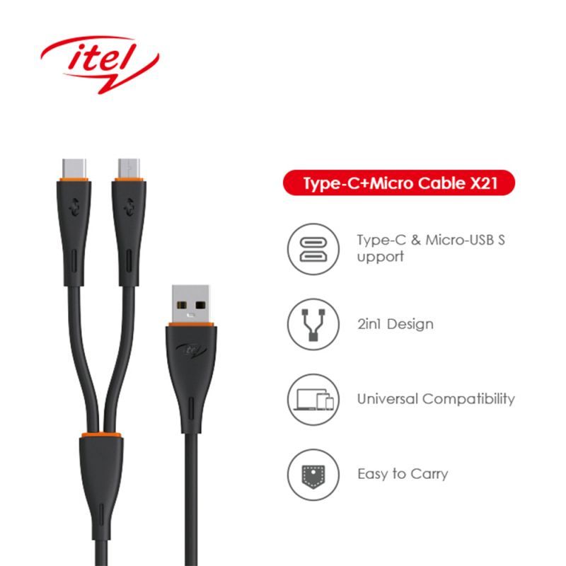 This Itel X21 Type C & Micro Cable is the perfect charging solution for your devices. It offers a 2 in 1 charging cable with a 1m USB to Type C & Micro USB Cable, allowing you to easily charge your equipment. The package size is small and light, measuring 140mm x 70mm x 20mm and weighing 49g. Each package includes 1 cable, so you can be sure you have everything you need.