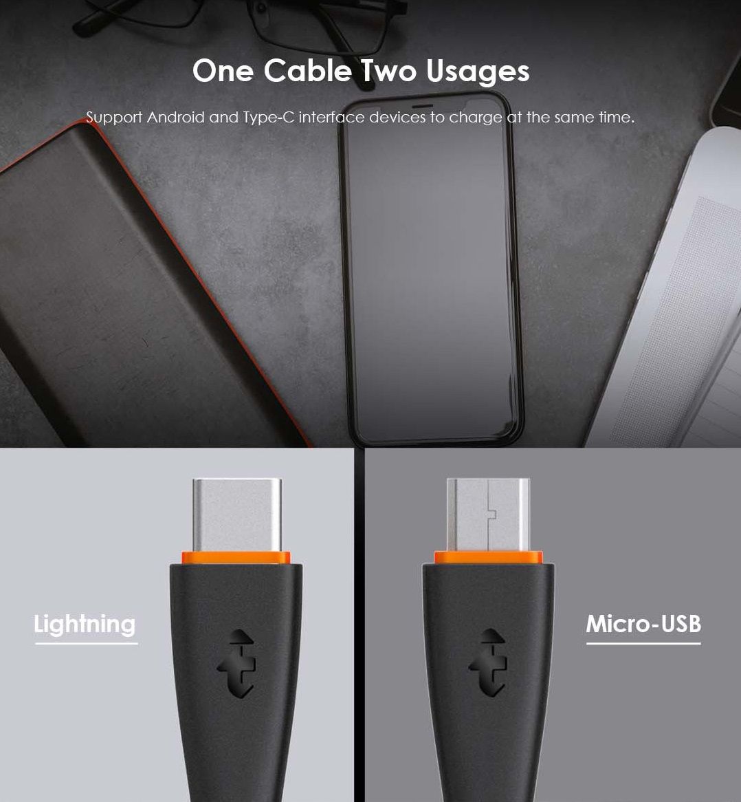 The super durable cable enables the maximum 2.1A fast charge speed, and provides a secure and reliable fit for any micro USB and lightning devices.