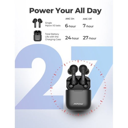 Long-Lasting Battery Life Keep the music playing all day long with up to 30 hours of battery life with the charging case. Quick to charge and built to last, these earphones are your perfect companion for long commutes, extended workouts, or just relaxing at home.