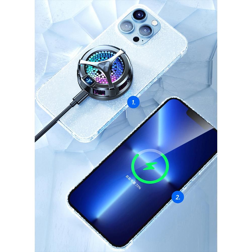 1. Quick Cooling: Strong magnets allow the phone cooler for game auto-lock to connect to your phone. The magnetic wirele charger lets you charge and cool compatible for iPhone at the same time. Once the semiconductor material is energized, it cools the phone to 59°F-64°F in le than 10 seconds while the phone is charging or playing a video. 2. 15W Max Fast Wirele Magnetic Charging: The strong magnet can make the phone cooler automatically lock and connect to compatible for iPhone 13/12 series. Support up to 15W (compatible for iPhone series 7.5W) fast charge. Designed to charge your phone 30% faster than standard wirele chargers. 3. Cool RGB Ambient Light: Built-in cool RGB lighting design, suitable for gamers. The chromaticity of this mobile phone radiator can display charming colorful lights in low-light envments, making e-sports games full of atmosphere. Also, it can be quiet without disturbing those around you. It also complies with the Qi wirele charging standard, which fully protects the safety of the mobile phone during the wirele charging proce. 4. Smart Digital Display & Low Noise Operation: The cooling LED smart digital display that can be seen on this mobile phone radiator can rapidly cool down and display the temperature of the contact surface in real time; and this radiator works with low noise, which is very suitable for gifting for a long time. cell phone friends.
