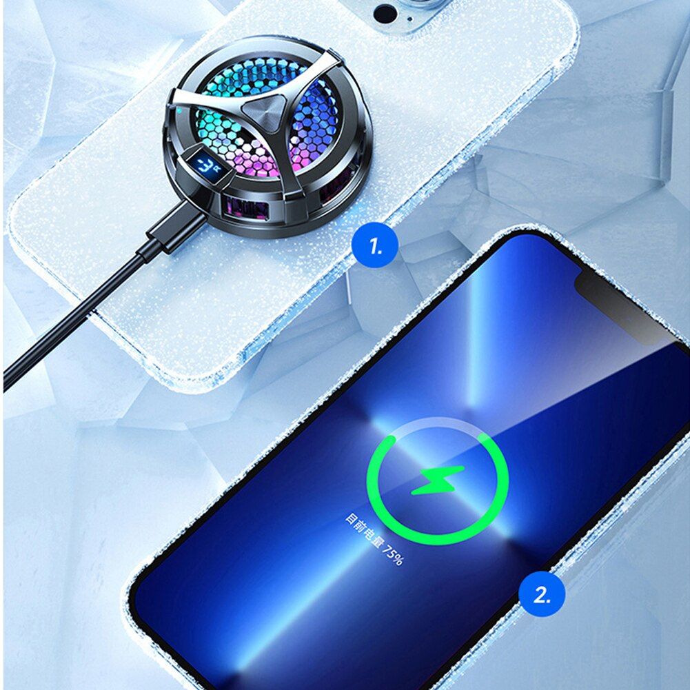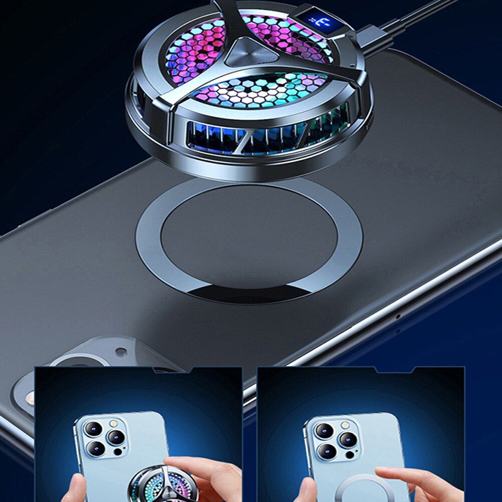 1. Quick Cooling: Strong magnets allow the phone cooler for game auto-lock to connect to your phone. The magnetic wirele charger lets you charge and cool compatible for iPhone at the same time. Once the semiconductor material is energized, it cools the phone to 59°F-64°F in le than 10 seconds while the phone is charging or playing a video. 2. 15W Max Fast Wirele Magnetic Charging: The strong magnet can make the phone cooler automatically lock and connect to compatible for iPhone 13/12 series. Support up to 15W (compatible for iPhone series 7.5W) fast charge. Designed to charge your phone 30% faster than standard wirele chargers. 3. Cool RGB Ambient Light: Built-in cool RGB lighting design, suitable for gamers. The chromaticity of this mobile phone radiator can display charming colorful lights in low-light envments, making e-sports games full of atmosphere. Also, it can be quiet without disturbing those around you. It also complies with the Qi wirele charging standard, which fully protects the safety of the mobile phone during the wirele charging proce. 4. Smart Digital Display & Low Noise Operation: The cooling LED smart digital display that can be seen on this mobile phone radiator can rapidly cool down and display the temperature of the contact surface in real time; and this radiator works with low noise, which is very suitable for gifting for a long time. cell phone friends.