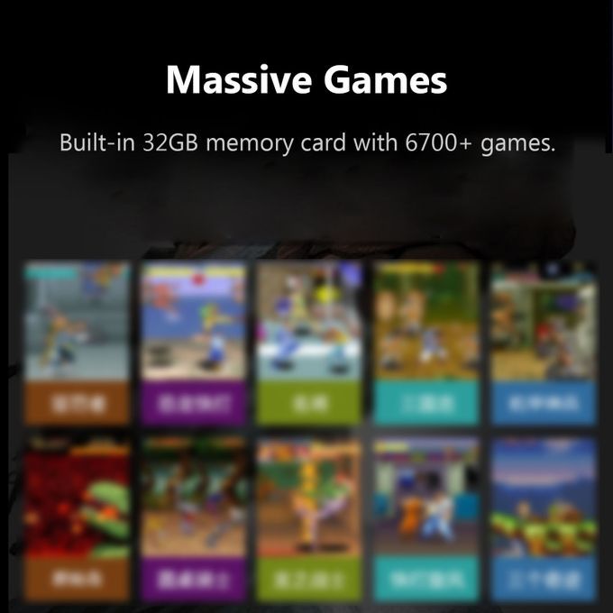 Built-in 32GB memory card with 6700+ games, supporting 24 kinds of classic simulators.