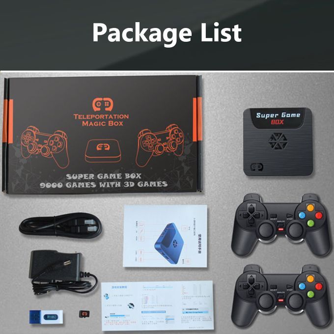 1 * Game Box Console2 * Gamepads (Wireless/Wired Optional)1 * Wireless Receiver (NOT included if choose wired gamepads)1 * High-definition Video Cable1 * Memory Card (Plug In the Game Box)1 * Card Reader1 * 12V Adapter1 * User Manual (English/Chinese)