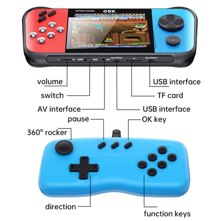 X60 Pocket Console, Style: Dual Player Red Yellow+1 Handle