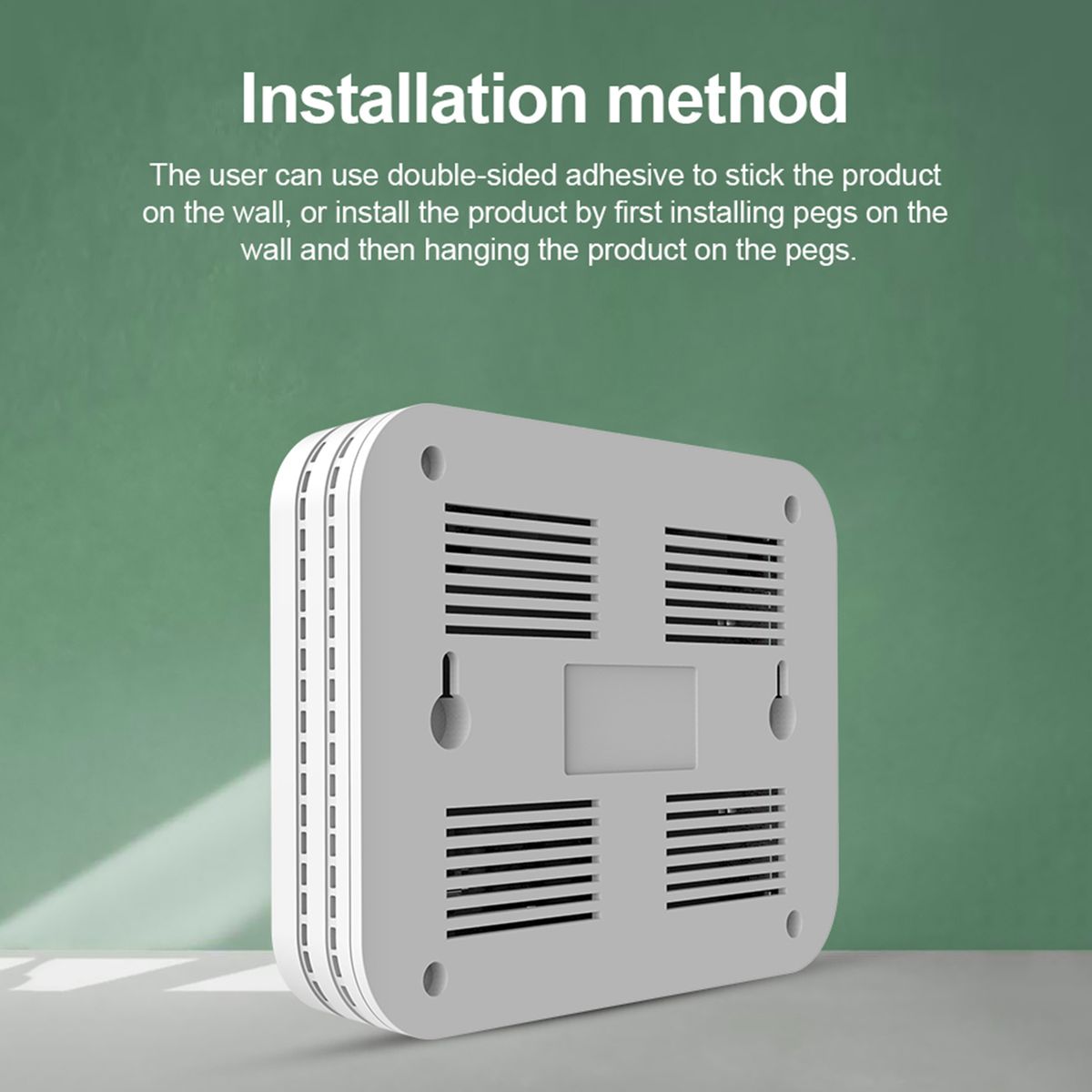 Easy installation by double-sided adhesive or pegs, mounted on the wall.