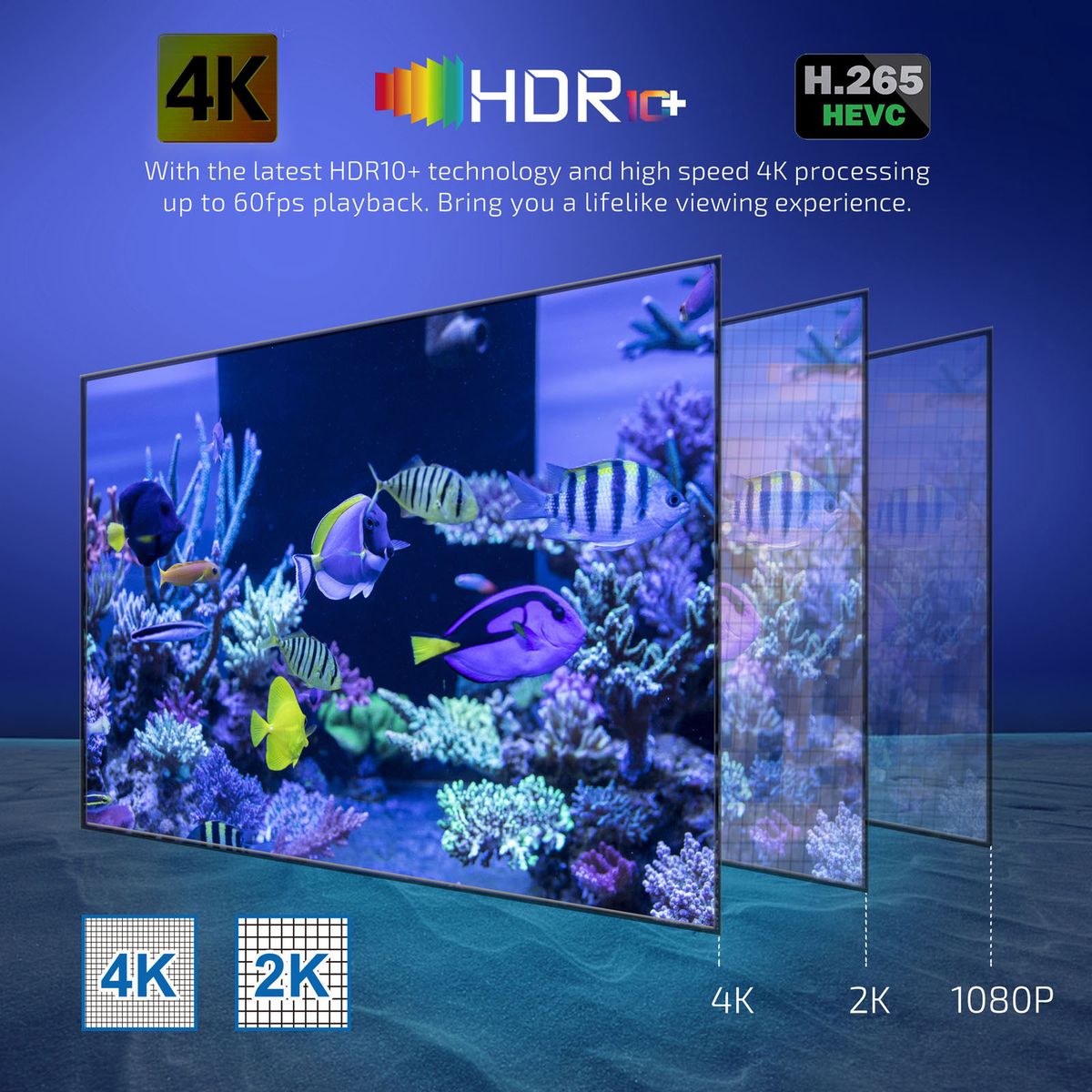 4K * 2K output provides you high definition viewing and fluent video playing, making it as the highest resolution signal available for home movies.