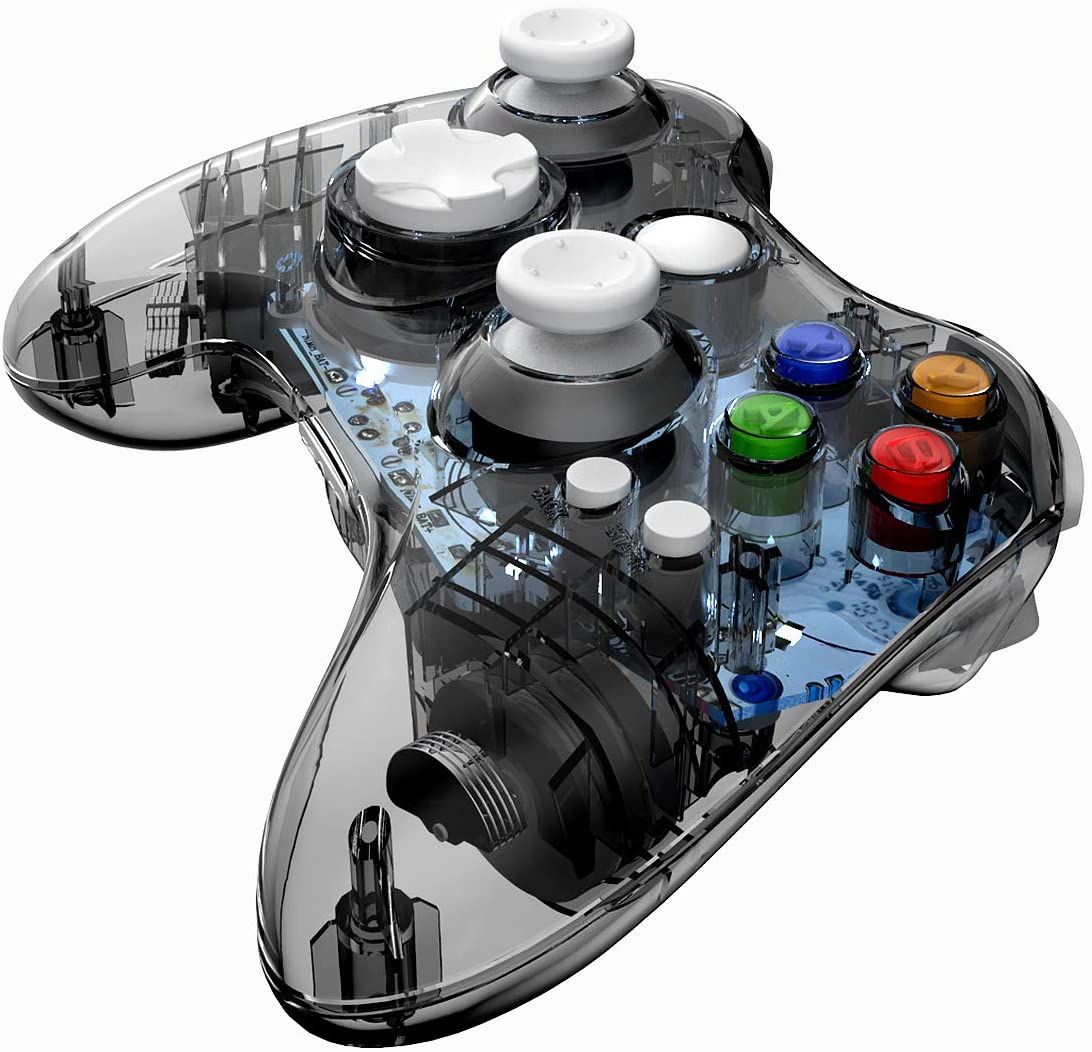 - Built-in with seven LEDs with blinking function which are controlled by a switch on the back of the gamepad. Configured with a jack for earphone and microphone input supporting the original Xbox 360 earphone, with sound output and chat online functions.