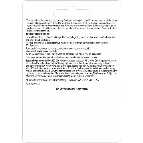 Gaming is better with Xbox Live Gold. Join the best community of gamers on the most advanced multiplayer network, where dedicated servers maximize performance, speed, and reliability. Experience the best in competitive and cooperative gaming with franchises like Halo, Gears of War, and Forza Motorsport. Get free games every month, worth up to $700 a year, including Xbox 360 games playable on Xbox One. You also save up to 50-75% off games in the Xbox Store. With millions of gamers worldwide, and so many games to play, now’s a great time to go Gold