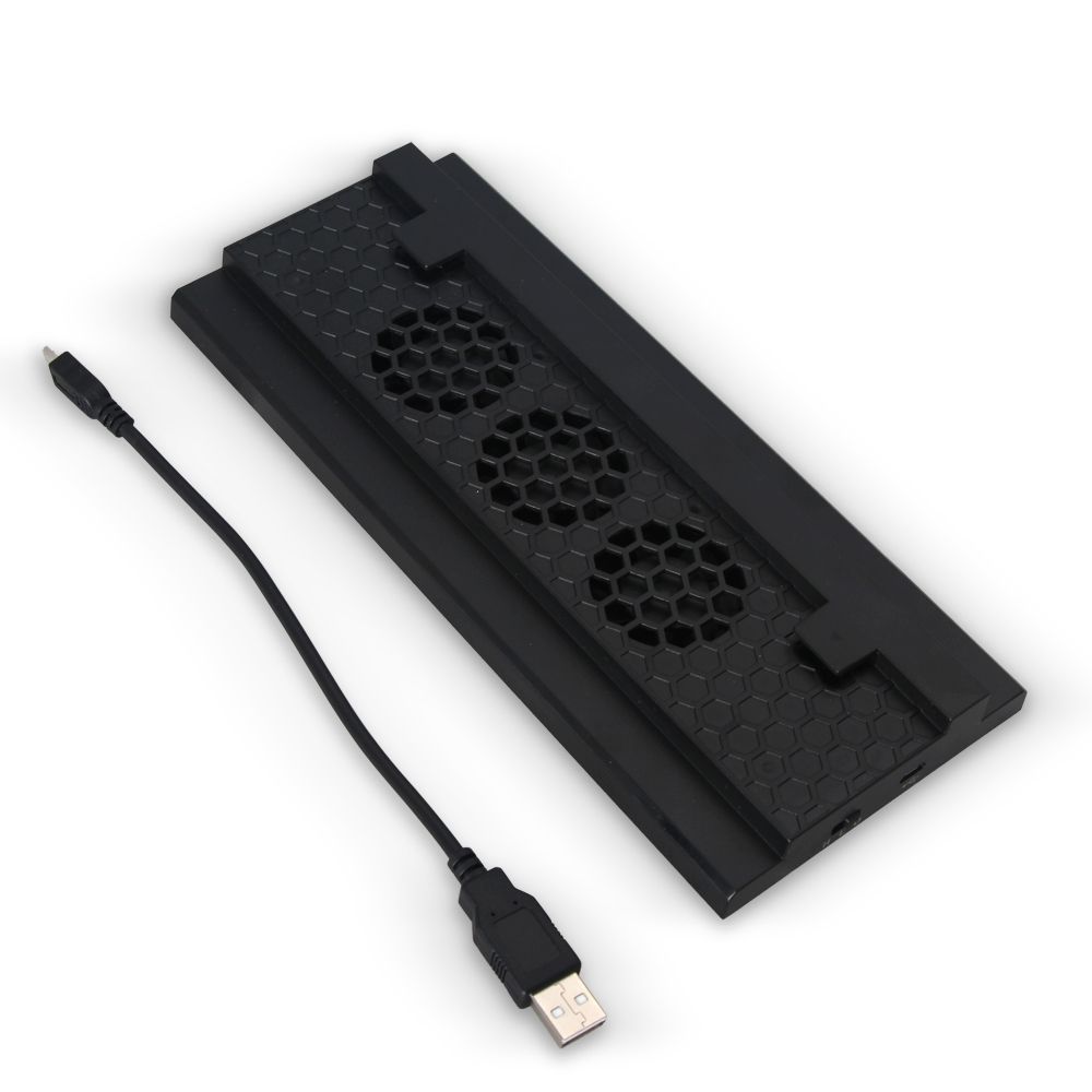 Officially and specially designed for Xbox One S consolesBeautiful Design, Attractive feelAllows you to store your Xbox One S Console in its upright vertical position.multi mode function: Game Console Vertical Stand + 3 Cooler Fans + 2 USB HUB Charger PortsThree Cooling Fans: Two built-in fans provide a steady flow of cool air to maintain your Xbox One Slim from overheating and prolonging its lifetime.Super quiet and efficient fanCharges controllers quickly and has circuit to prevent overcharging or dulling battery life.Simple Plug and Play: No power cable. Hit the power button after connected and you are ready to go.
