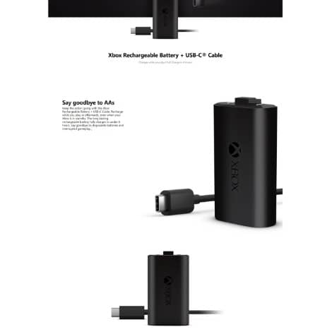 Keep the action going with the Xbox Rechargeable Battery + USB-C Cable. Recharge while you play or afterwards, even when your Xbox is in standby. The long-lasting rechargeable battery fully charges in under 4 hours. Say goodbye to disposable batteries and interrupted gameplay.* *Important information: Works with Xbox Wireless Controllers with USB-C port.