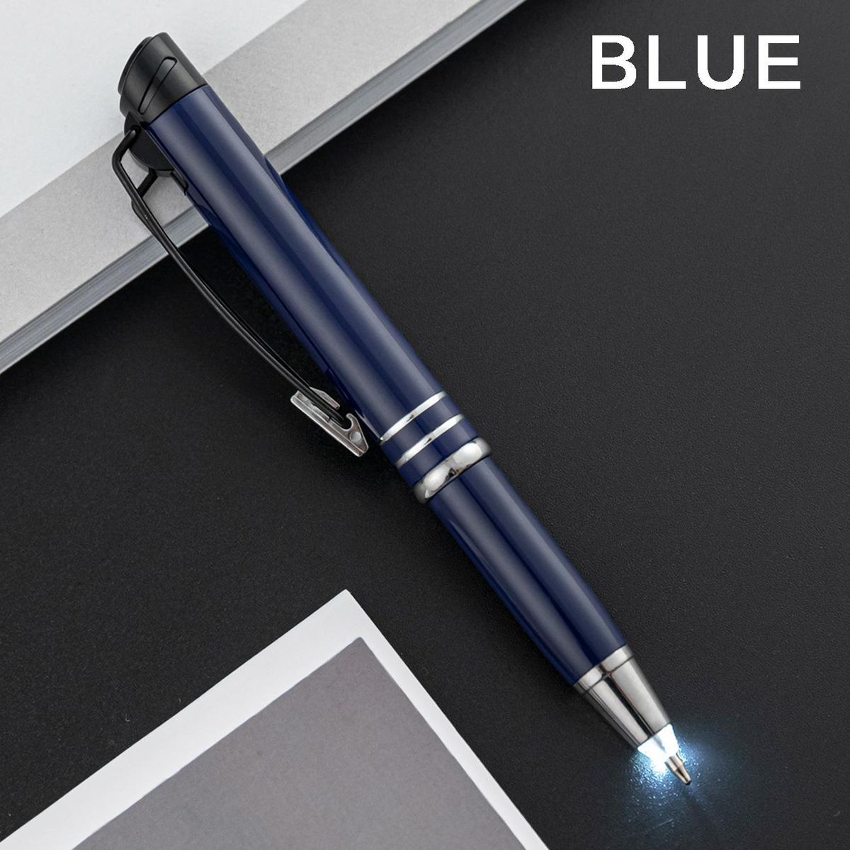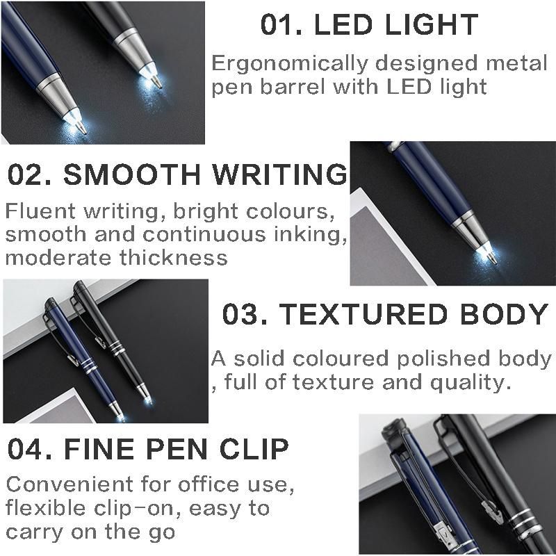 2. Easy to operate: you just lightly press the button of the pen head, then you can easily unfold or retract the pen tip and turn on or off the LED light; What's more, the pen can be adjusted to light or no light when writing; Ballpoint pen with light is suitable for day and night writing