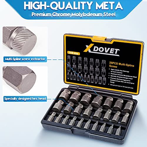- Premium industrial grade materialMade of heat-treated high-quality high-arbon steel (hromium-molybdenum steel)is the ideal tool for removing broken srews, bolts, studs, fittings, threaded pipes and pins.XDOVET srew Extrator Set is perfet for any mehanis tool kit.