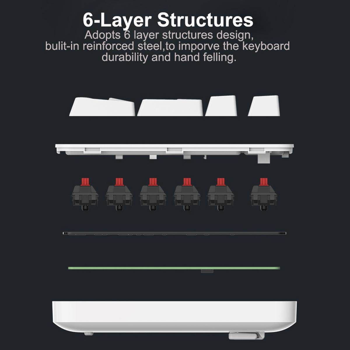 5. Adopts 6 layer structures design,bulit-in reinforced steel,to imporve the keyboard durability and hand felling.
