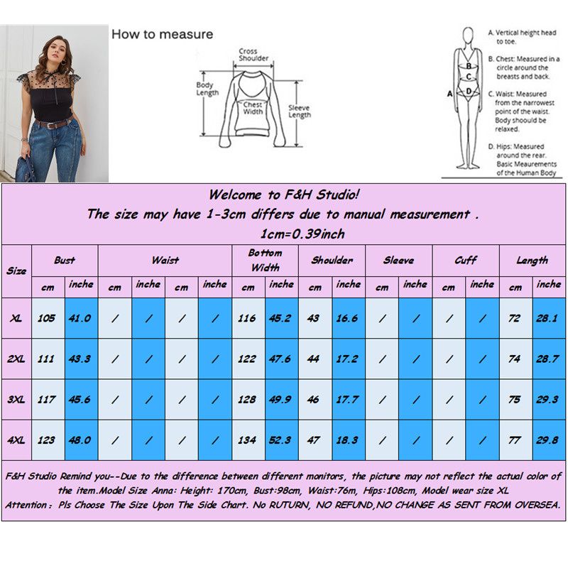 Size:XL, 2XL, 3XL,4XL Model Size FYR: Height: 171cm, Bust:106cm, Waist:76cm, Hips:120cm, Model wear size XL ❤This is a bow-tie neck short sleeve big size tops plus size blouse !!❤Style:Bow-tie Neck Short Sleeve Plus Size Blouse Big Size Tops. Please note that slight color difference should be acceptable due to the light and screen.What You Get:1 x Blouse. FQA:1. Q: Why the item haven't shipped out? A: After you place the order, We will ship the item to the rehmie warehouse within 48 hours as soon as possible, and then rehmie warehouse will send the item to you. If you find the logistics status is"to be shipped", it may be because the rehmie warehouse has not yet been shipped. Please don't worry. 2. Q: How can I choose the size? A:Please refer to the size chart and select the appropriate size according to your actual size.If you are not sure what size to choose, please call me. 3. Pls take note that all the clothes can not be returned or exchanged.4. All dimensions are measured by hand, there will be 2-3cm reasonable deviations. (1cm=0.39 inches). Pictures are only samples for reference. Due to the differences in monitor settings, the colors shown in the photograph may not correspond 100% to those in the items themselves. 5.For transportation needs, the cloth that you've received will have a fold phenomenon. Please don't worry, this fold situation will disappear after the first time you clear or ironing.