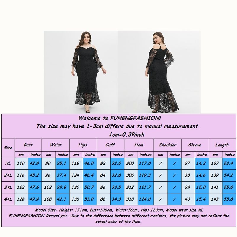 Size: XL, 2XL, 3XL, 4XL. Model Size FYR: Height: 171cm, Bust:106cm, Waist:76cm, Hips:120cm, Model wear size XL.❤This is a short sleeve Party dress !!❤Style:Off The Shoulder Short Sleeve Lace Slim Fit Plus Size Dress.Please note that slight color difference should be acceptable due to the light and screen.What You Get:1 x Dress. FQA:1. Q: Why the item haven't shipped out?A: After you place the order, We will ship the item to the rehmie warehouse within 48 hours as soon as possible, and then rehmie warehouse will send the item to you. If you find the logistics status is"to be shipped", it may be because the rehmie warehouse has not yet been shipped. Please don't worry.2. Q: How can I choose the size?A:Please refer to the size chart and select the appropriate size according to your actual size.If you are not sure what size to choose, please call me. 3. Pls take note that all the clothes can not be returned or exchanged.4. All dimensions are measured by hand, there will be 2-3cm reasonable deviations. (1cm=0.39 inches). Pictures are only samples for reference. Due to the differences in monitor settings, the colors shown in the photograph may not correspond 100% to those in the items themselves. 5.For transportation needs, the cloth that you've received will have a fold phenomenon. Please don't worry, this fold situation will disappear after the first time you clear or ironing.