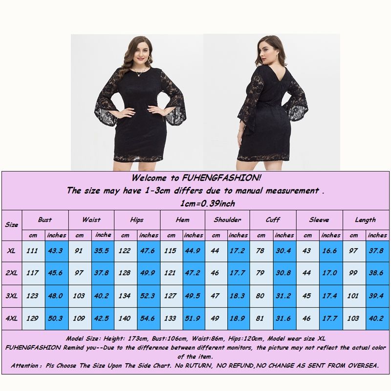 Size: XL, 2XL, 3XL, 4XL. Model Size FYR: Height: 171cm, Bust:106cm, Waist:76cm, Hips:120cm, Model wear size XL.❤This is a short sleeve dress !!❤Style:Round Neck Short Sleeve Lace Party Plus Size Dress.Please note that slight color difference should be acceptable due to the light and screen.What You Get:1 x Dress. FQA:1. Q: Why the item haven't shipped out?A: After you place the order, We will ship the item to the rehmie warehouse within 48 hours as soon as possible, and then rehmie warehouse will send the item to you. If you find the logistics status is"to be shipped", it may be because the rehmie warehouse has not yet been shipped. Please don't worry.2. Q: How can I choose the size?A:Please refer to the size chart and select the appropriate size according to your actual size.If you are not sure what size to choose, please call me. 3. Pls take note that all the clothes can not be returned or exchanged.4. All dimensions are measured by hand, there will be 2-3cm reasonable deviations. (1cm=0.39 inches). Pictures are only samples for reference. Due to the differences in monitor settings, the colors shown in the photograph may not correspond 100% to those in the items themselves. 5.For transportation needs, the cloth that you've received will have a fold phenomenon. Please don't worry, this fold situation will disappear after the first time you clear or ironing.
