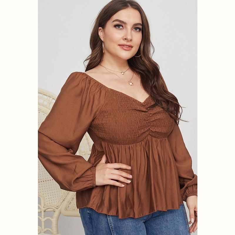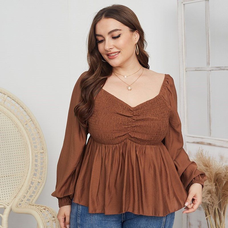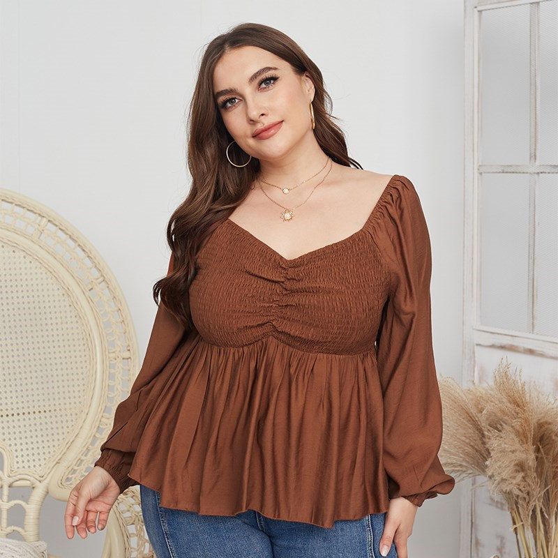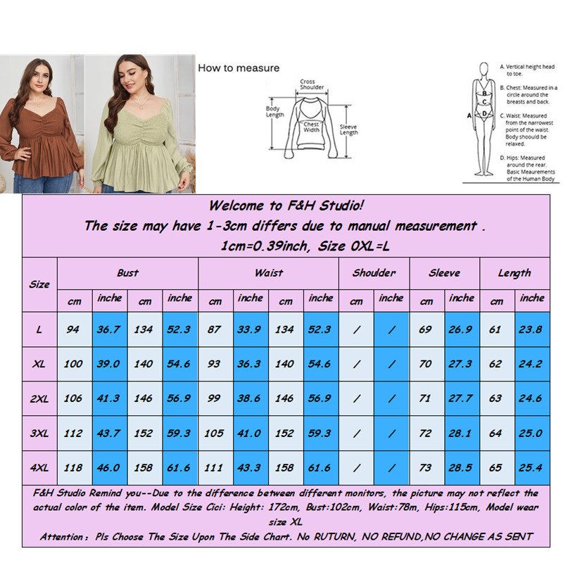 Size: XL, 2XL, 3XL, 4XL Model Size FYR: Height: 171cm, Bust:106cm, Waist:76cm, Hips:120cm, Model wear size XL ❤This is a v neck long sleeve big size tops plus size blouse !!❤Style:V Neck Long Sleeve Plus Size Blouse Big Size Tops. Please note that slight color difference should be acceptable due to the light and screen.What You Get:1 x Blouse. FQA:1. Q: Why the item haven't shipped out? A: After you place the order, We will ship the item to the rehmie warehouse within 48 hours as soon as possible, and then rehmie warehouse will send the item to you. If you find the logistics status is"to be shipped", it may be because the rehmie warehouse has not yet been shipped. Please don't worry. 2. Q: How can I choose the size? A:Please refer to the size chart and select the appropriate size according to your actual size.If you are not sure what size to choose, please call me. 3. Pls take note that all the clothes can not be returned or exchanged.4. All dimensions are measured by hand, there will be 2-3cm reasonable deviations. (1cm=0.39 inches). Pictures are only samples for reference. Due to the differences in monitor settings, the colors shown in the photograph may not correspond 100% to those in the items themselves. 5.For transportation needs, the cloth that you've received will have a fold phenomenon. Please don't worry, this fold situation will disappear after the first time you clear or ironing.