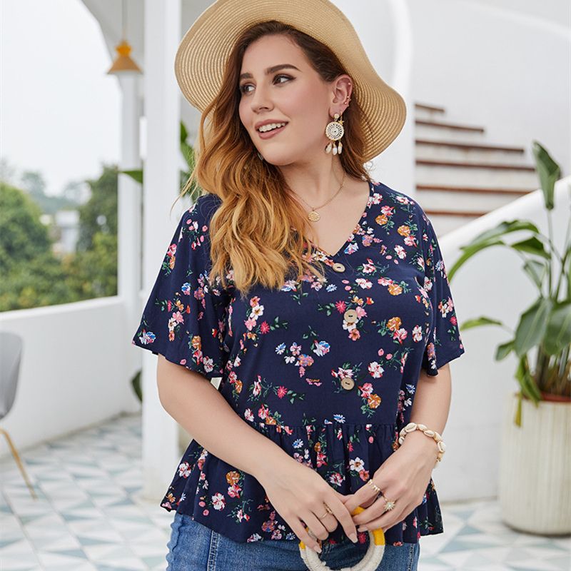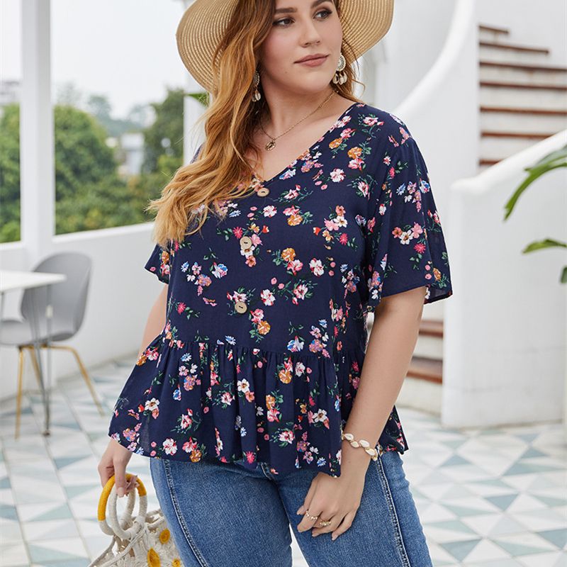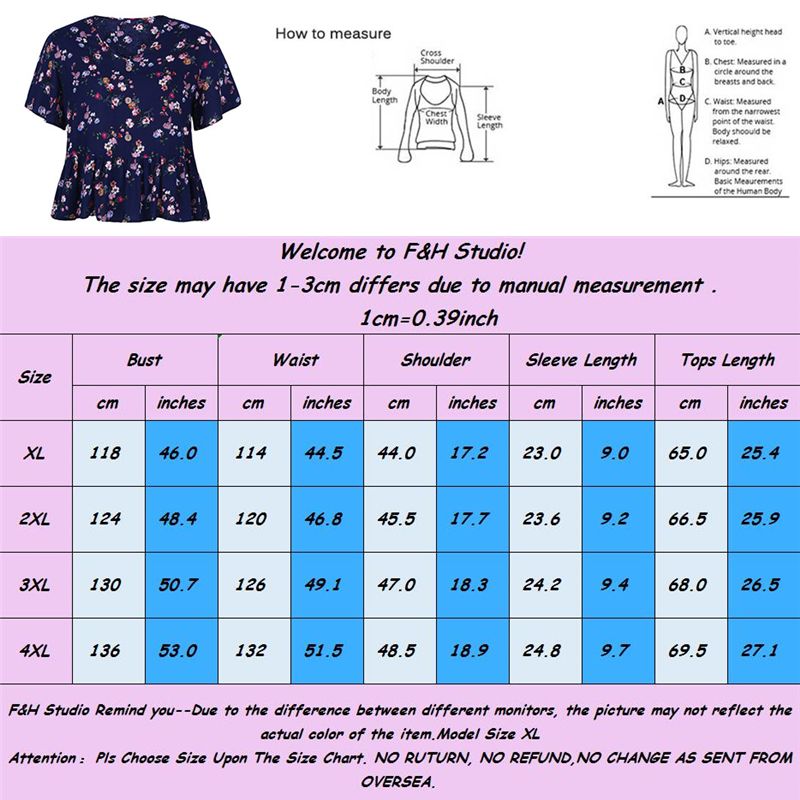 Size: XL, 2XL, 3XL, 4XL Model Size FYR: Height: 171cm, Bust:106cm, Waist:76cm, Hips:120cm, Model wear size XL ❤This is a v neck short sleeve big size tops plus size blouse !!❤Style:V Neck Short Sleeve Plus Size Blouse Big Size Tops. Please note that slight color difference should be acceptable due to the light and screen.What You Get:1 x Blouse. FQA:1. Q: Why the item haven't shipped out? A: After you place the order, We will ship the item to the rehmie warehouse within 48 hours as soon as possible, and then rehmie warehouse will send the item to you. If you find the logistics status is"to be shipped", it may be because the rehmie warehouse has not yet been shipped. Please don't worry. 2. Q: How can I choose the size? A:Please refer to the size chart and select the appropriate size according to your actual size.If you are not sure what size to choose, please call me. 3. Pls take note that all the clothes can not be returned or exchanged.4. All dimensions are measured by hand, there will be 2-3cm reasonable deviations. (1cm=0.39 inches). Pictures are only samples for reference. Due to the differences in monitor settings, the colors shown in the photograph may not correspond 100% to those in the items themselves. 5.For transportation needs, the cloth that you've received will have a fold phenomenon. Please don't worry, this fold situation will disappear after the first time you clear or ironing.