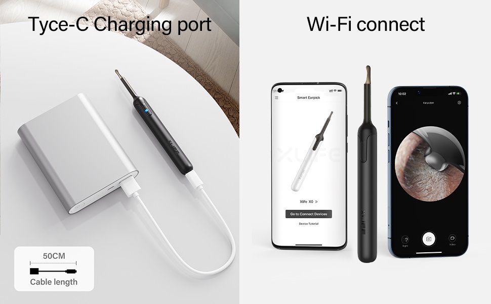 Fast wireless network visual connection. Open the pry bar without connection.Uses optical lenses and high performance up to 1080P. The CMOS sensor features clear images, a 20x magnification of the ear canal and a 100° viewing Angle. 13 lens combination and 6 LED lighting.Adapt to dry ear, oil ear and other complex environment.3 axis intelligent directional gyroscope fast positioning, screen is not biased.High quality OV chip video coding technology, hand-eye synchronous stimulation picky!WiFi signal is strong, strong penetration, avoid delay. It's safer.Earlock, overheat earplug protection, timed automatic shutdown, child lock and anti-freezing cracking protection.Intelligent thermostatic control. Avoid cold ear burns. Otoscope: non-inductive temperature of 25°C. Earbud body: 32°C palm temperature. Long battery life.Built-in 100mAh high capacity battery. Clean your ears for 10 minutes once a week for about 10 days.