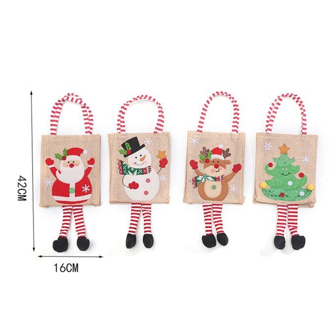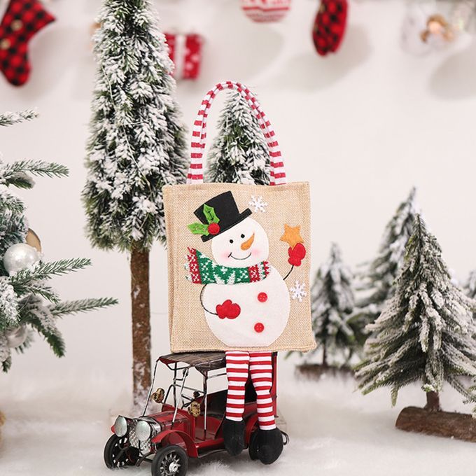 Made of flax and fabric, the Xmas gift bag is portable, practical and durable.