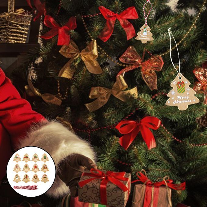 Christmas theme design: The Christmas tree label is in the shape of a Christmas tree, with 12 different Christmas themes, including Santa Claus, snowman, garland, reindeer, etc. Various Christmas tags make your gifts and Christmas trees colorful.