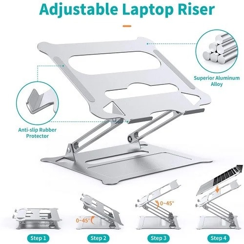 Ergonomic Design: This laptop stand is adjustable in laptop height and also angle of the laptop, you can raise the laptop screen height flexibly up or down for your better ergonomics to minimize neck fatigue. Just a push or a pull depending upon all-round multi-angle adjustment. If you are having neck pains from your laptop, do yourself a favor and get this laptop stand.