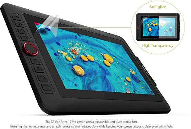 The XP-Pen Artist 12 Pro comes with a replaceable anti-glare optical film and features high transparency and scratch resistance while reducing glare and keeping your screen crisp and clear even bright light.