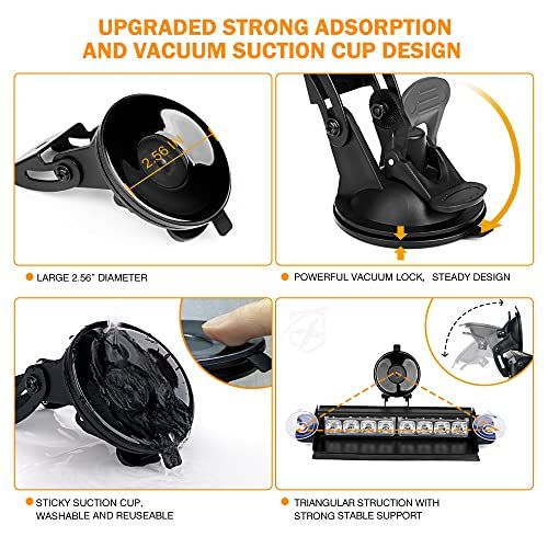 - STRONG TRIANGULAR INSTALL - Strong and stable sution ups brakets. (Patent Pending Design) Large sution up ontat surfae, washable and reusable with vauum lok adding stability.Upgraded design firmly mounts on a smooth windshield or bak window. with 2 supportive sution ups.