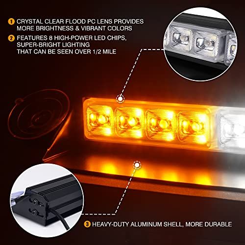- SMALL SIZE WITH BIG BRIGHTNESS - Our windshield strobe light bar features 8 high-power LEDs. The upgraded lens allows the brightness to be magnified and be seen at a greater distane, even visible during daytime onditions.